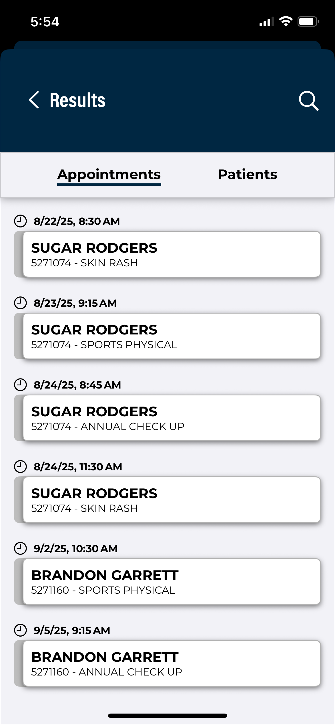 The eSOne mobile app supports outpatient and inpatient schedules. By default, the app opens to schedule (outpatient) mode. The mode can be changed in Filters the schedule filters. This section of the user guide will focus on the outpatient schedule mode. See Inpatient Workflow for more information about inpatient mode.